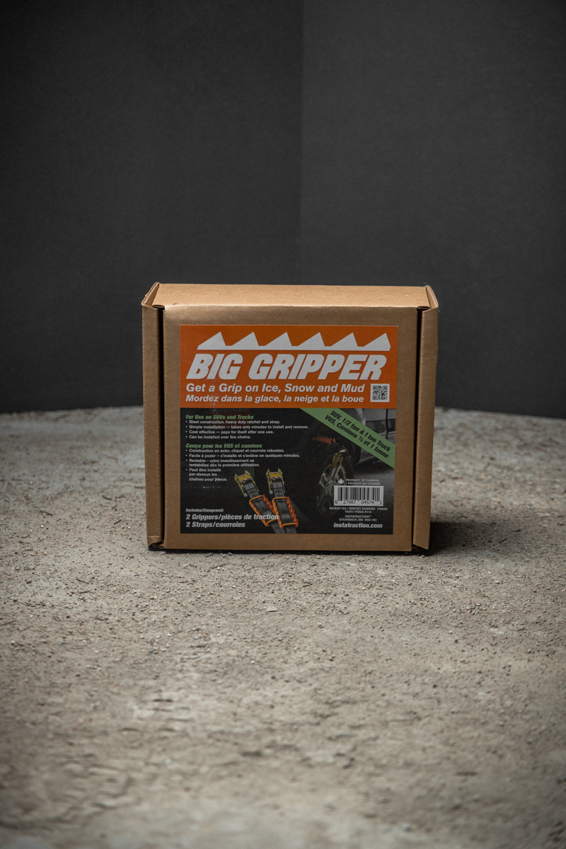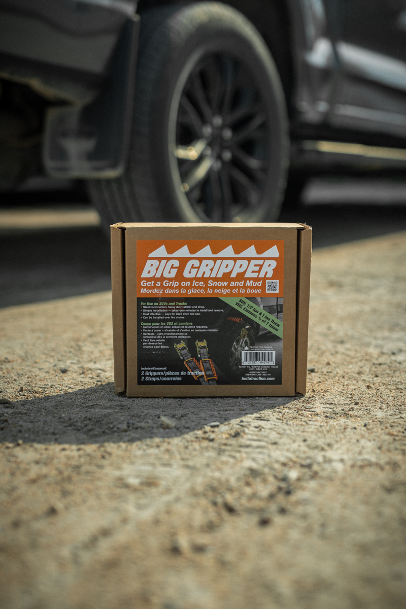During your travels you may come across situations that leave you stuck in snow, ice or mud. We at Instatraction have patented and manufactured a heavy duty, steel device called the Big Gripper. The SUV/ Pickup version has a heavy duty ratchet and a custom sewn strap for a passenger vehicle style tire rim. The Big Gripper SUV is a great gift for a loved one who enjoys the outdoors such as; ice fishing, hunting, exploring or off-roading. Whatever the need or circumstance the Big Gripper is built for unforeseen travel challenges. Big Gripper is designed to get you moving in all harsh road conditions such as snow, ice or mud. The fast installation and cost effective benefit of Big Gripper can save you and your company time and money.